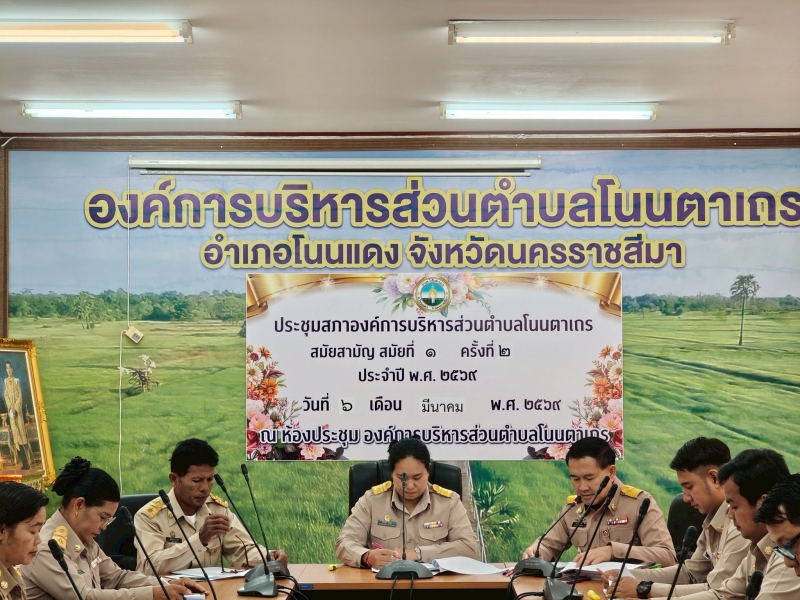 วันที่ 6 มีนาคม 2569 ณ ห้องประชุมสภาองค์การบริหารส่วนตำบลโนนตาเถร ได้มีการจัดการประชุมสภาสมัยสามัญ สมัยที่ 1 ครั้งที่ 2 ประจำปี พ.ศ. 2569